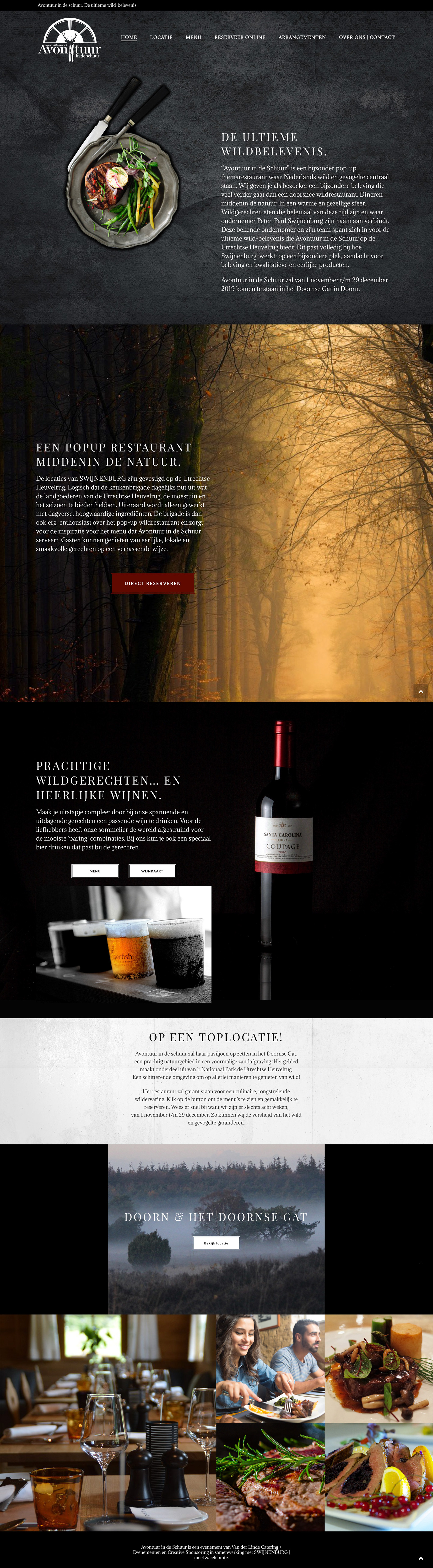 CMS website for Avontuur in de Schuur, a temporary restaurant that serves wild dishes
